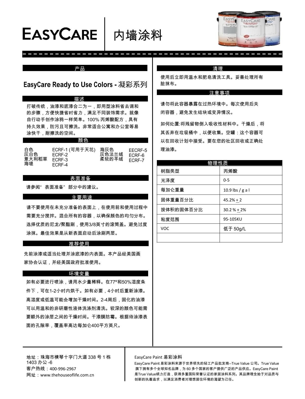 即开即用,让色彩变得自在轻松。多样的色彩选择,油漆和底漆合二为一,打破传统,即用型涂料省去调和的步骤,方便快捷省时省力,满足不同装饰需求。就像自行动手创作涂鸦一样简单。100% 丙烯酸配方,具有持久效果,防污且可擦洗。非常适合公寓和办公室等易涂快干,耐擦洗的空间。